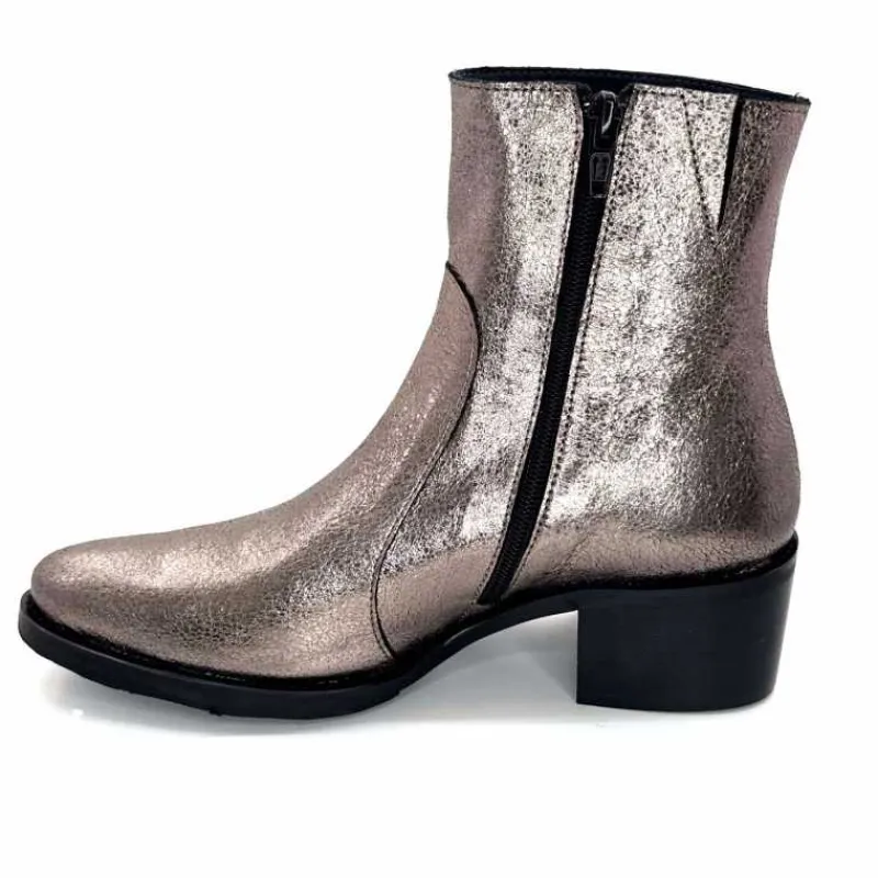 Rock|Basic<follia dolce Bottines Santiags Ivoire Tea Cuir Métal GrisMétal