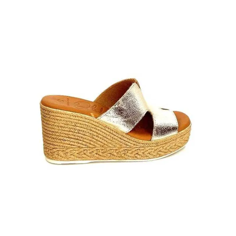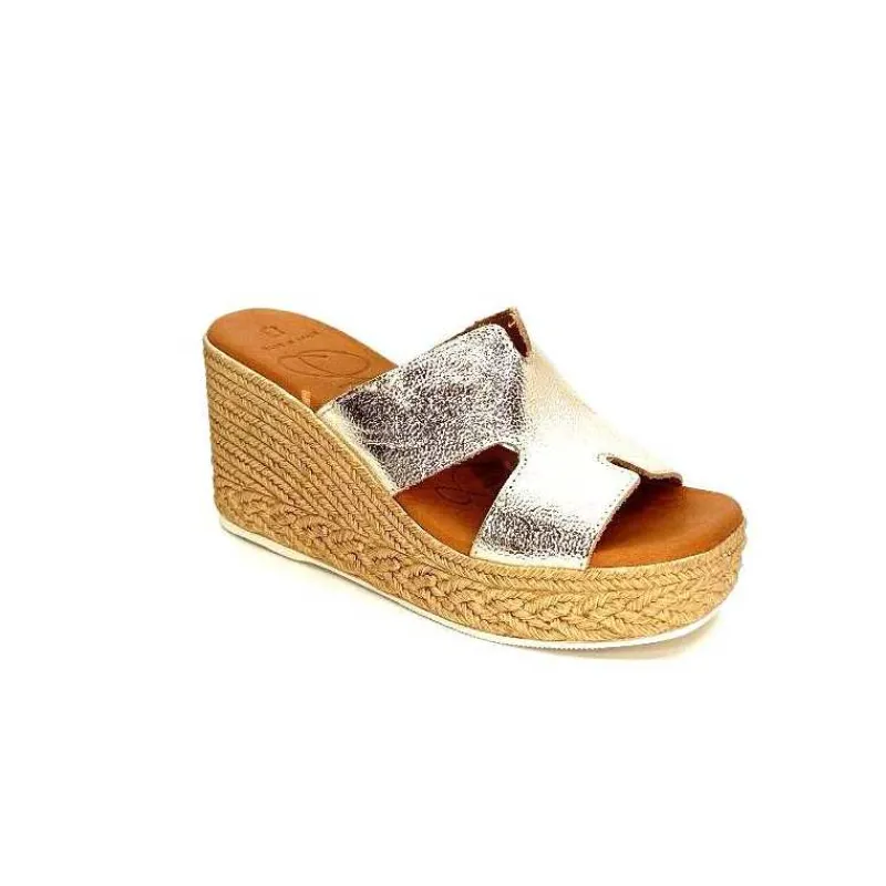 Vacances|Compensées & Plateformes<oh my sandals – innova footwear Mules à Talon Compenssées Ivoire 5458 Cuir Or