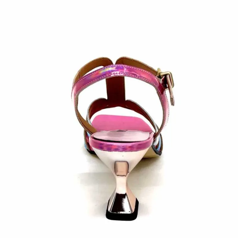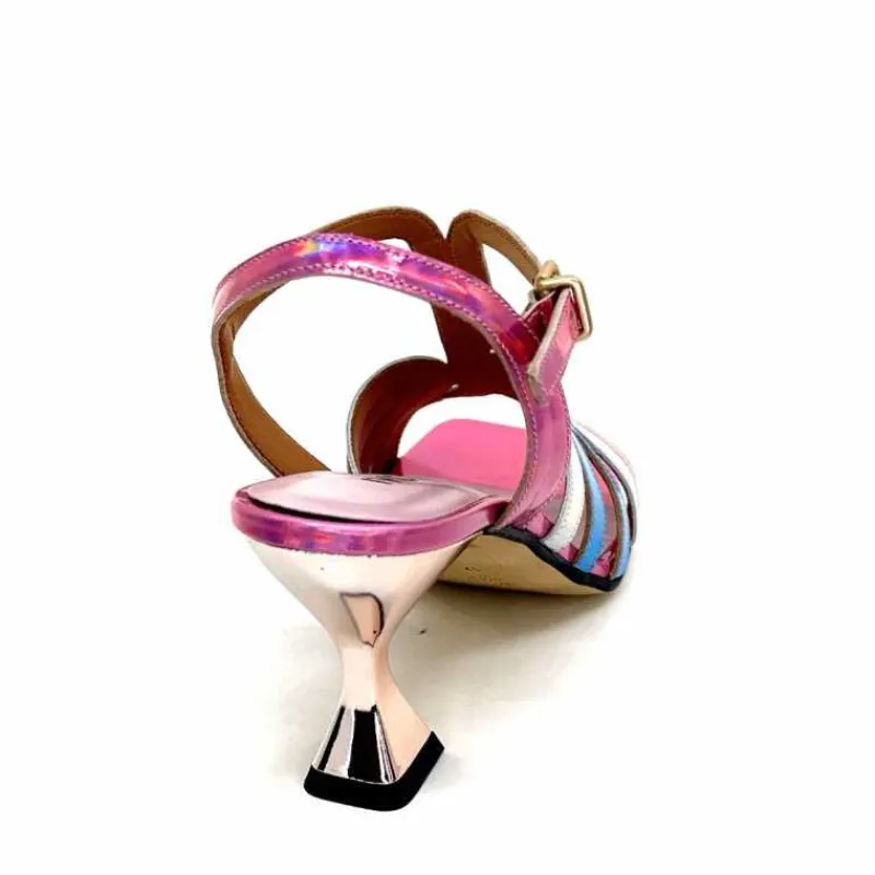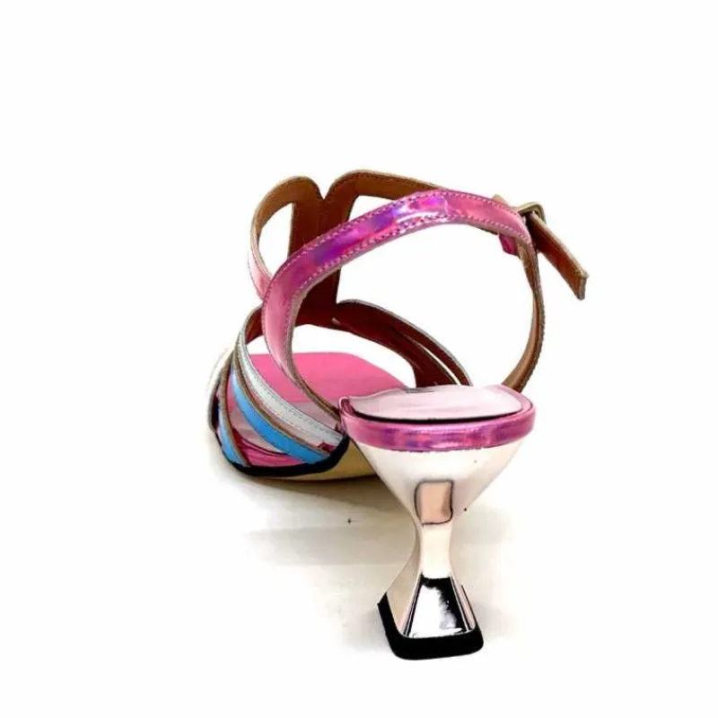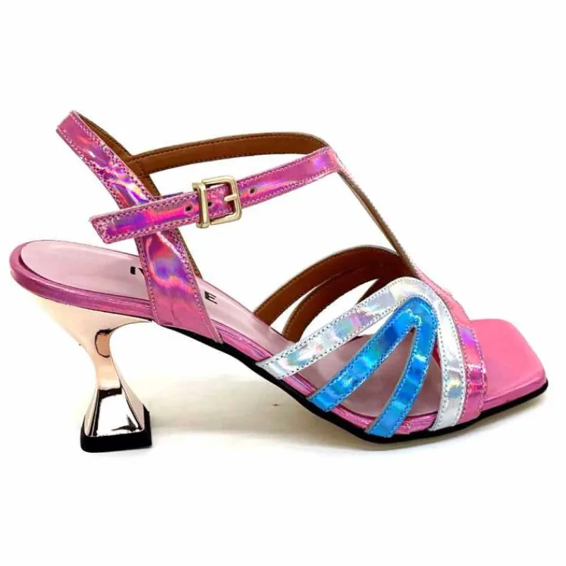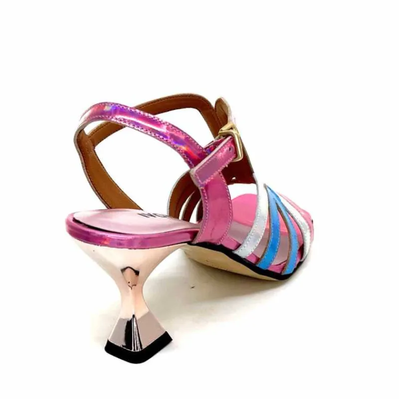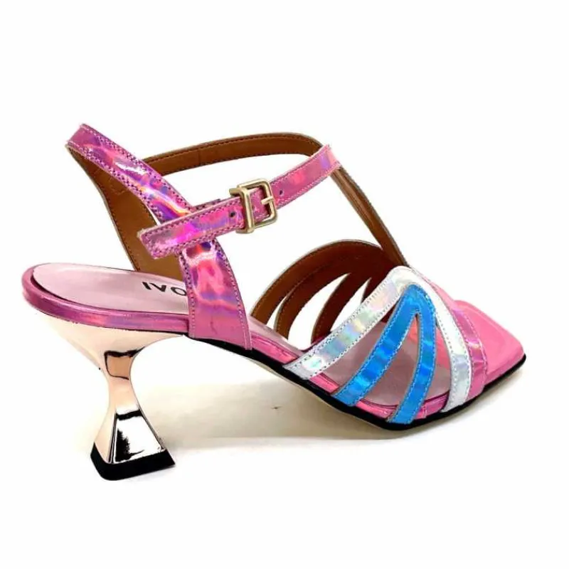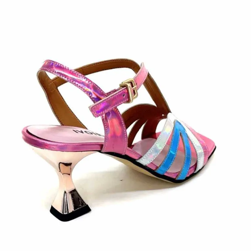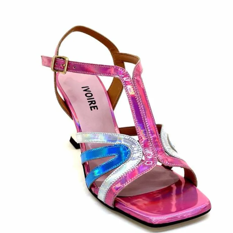 Vacances|Soirée<Ivoire0330 Sandales Talons Ivoire 706 Cuir Métallique Irisé Argent Bleu Rose