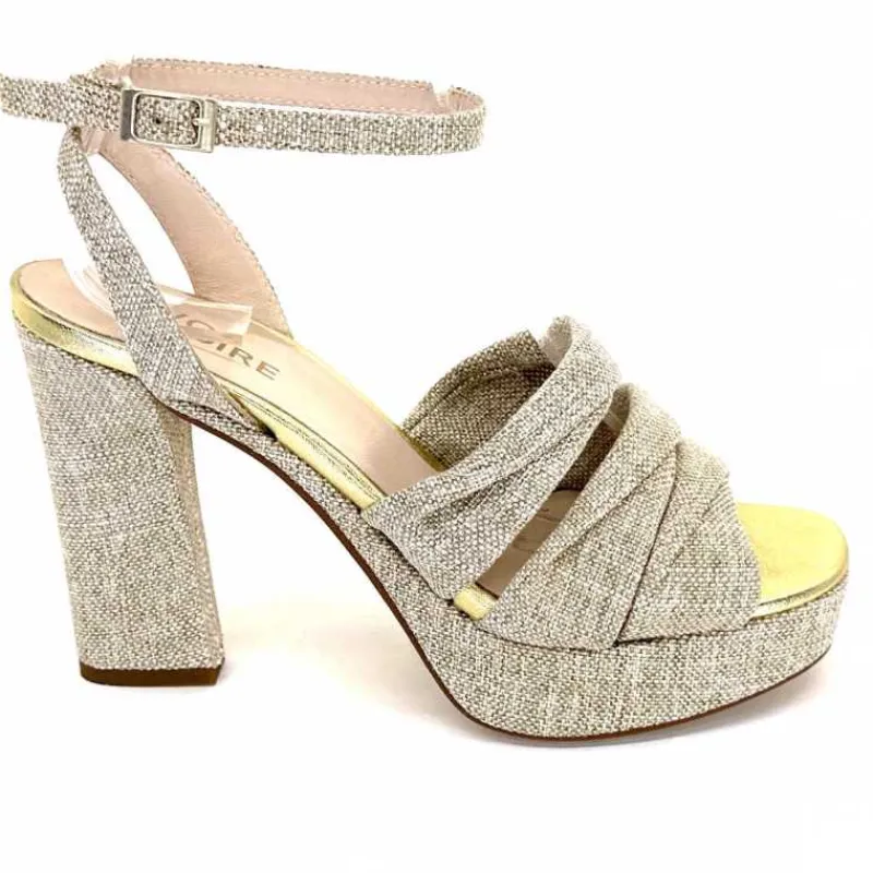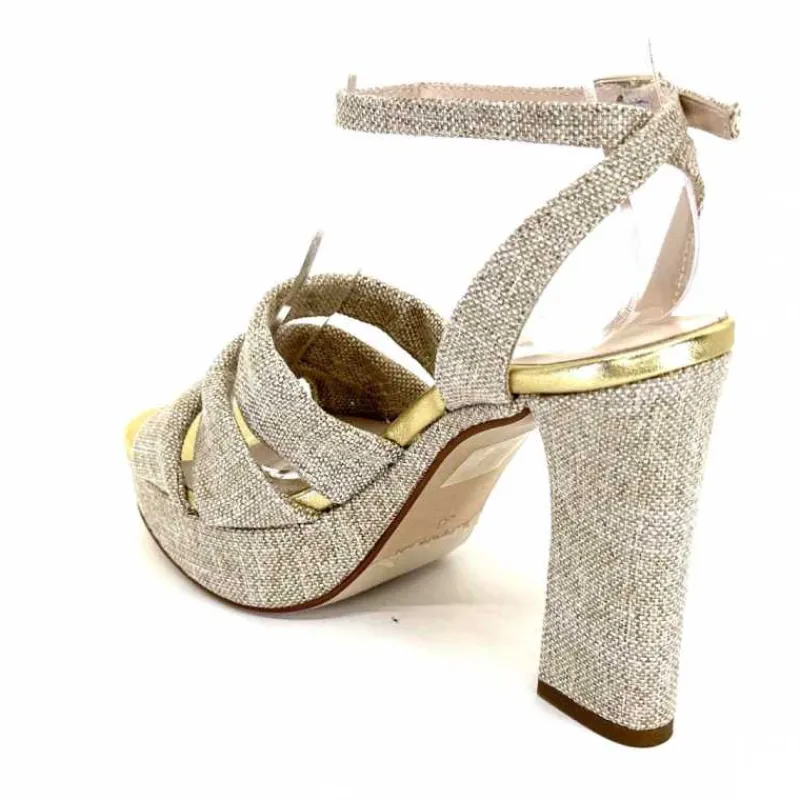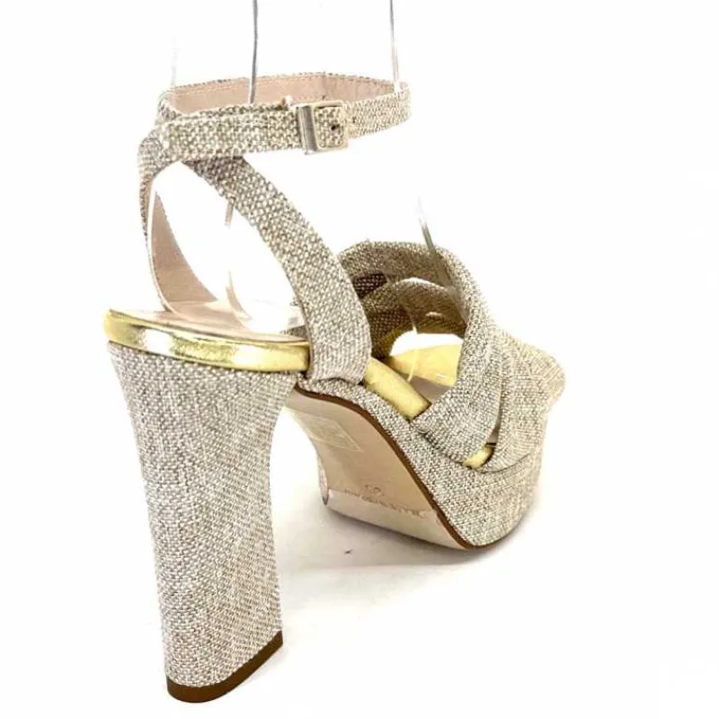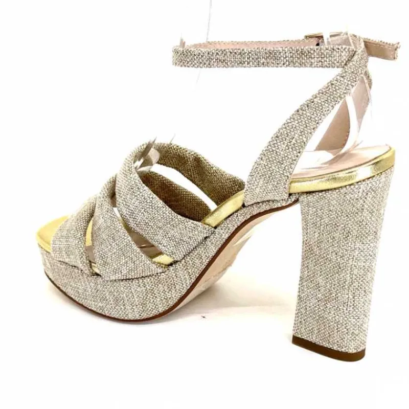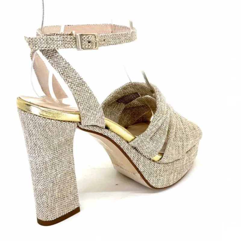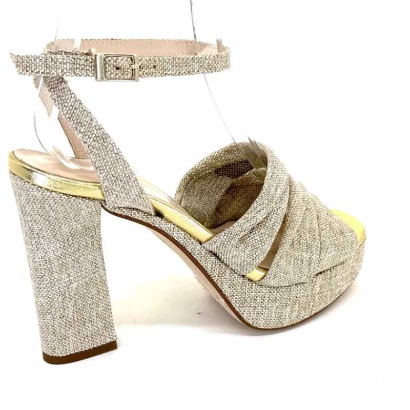 Vacances|Talon<Ivoire0376 Sandales Plateforme à Talon Ivoire 55908 Textile Or Beige