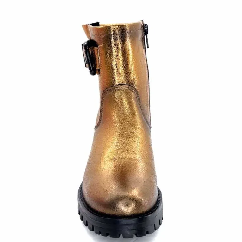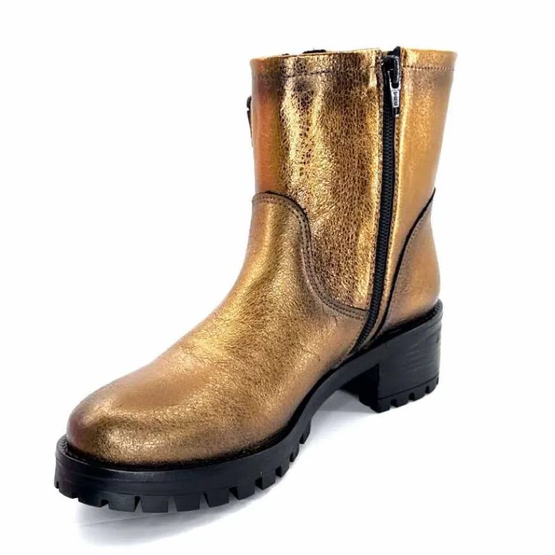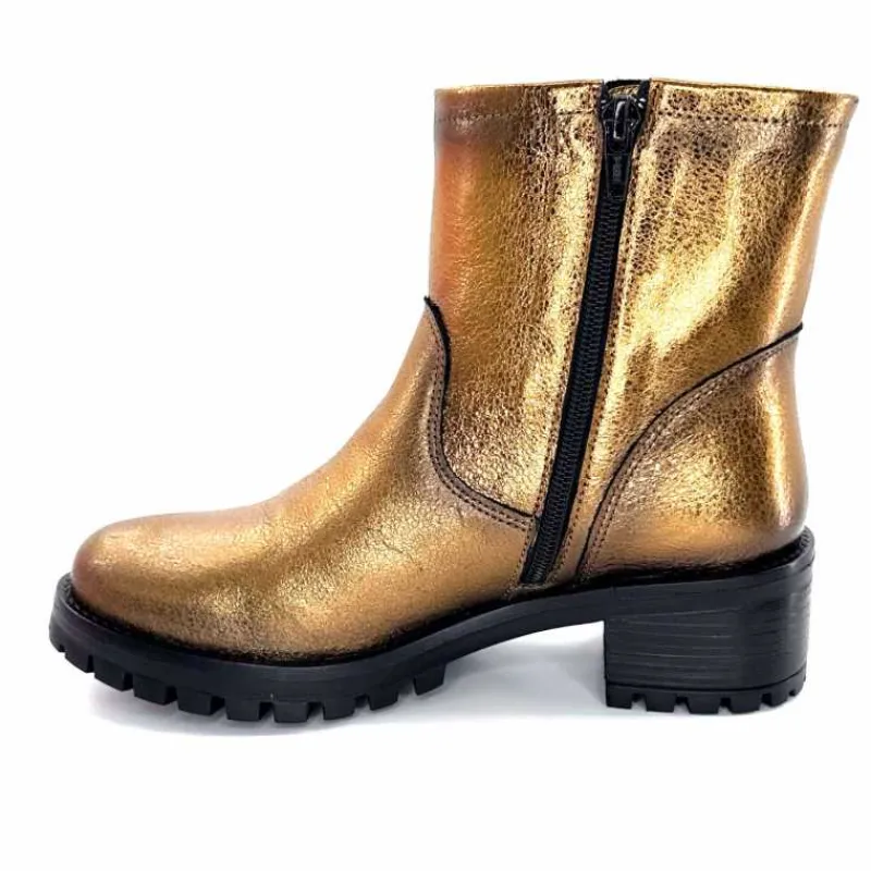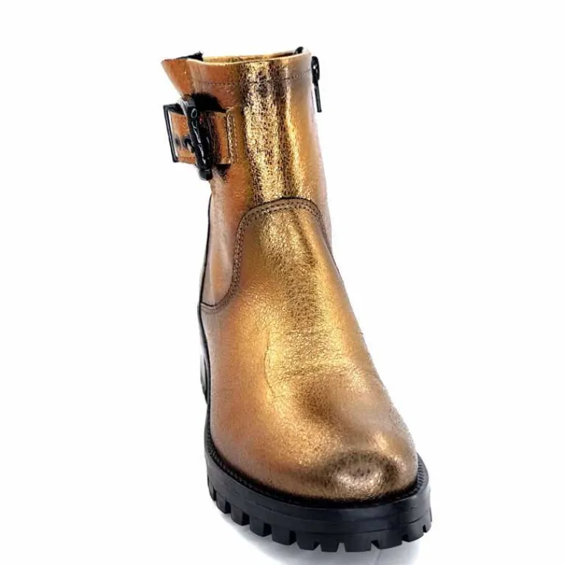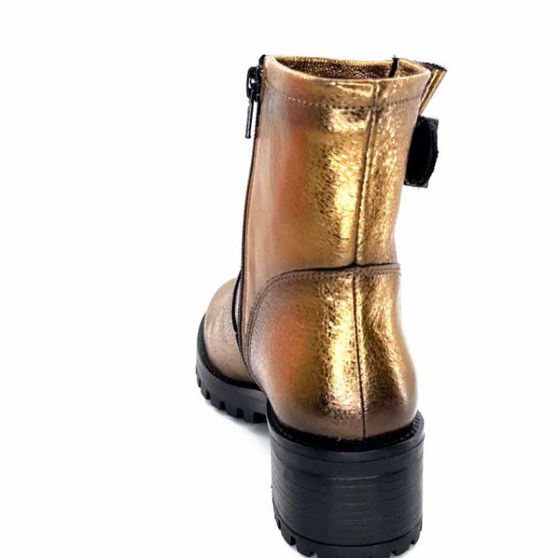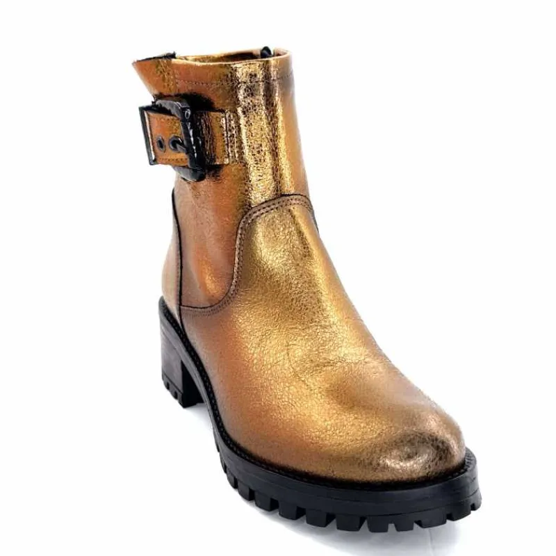 Rock|Bottines<follia dolce Bottines Bikers Ivoire Caici Cuir Bronze Or