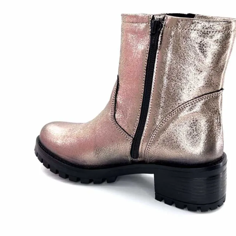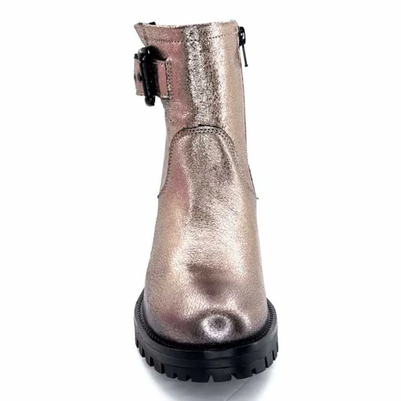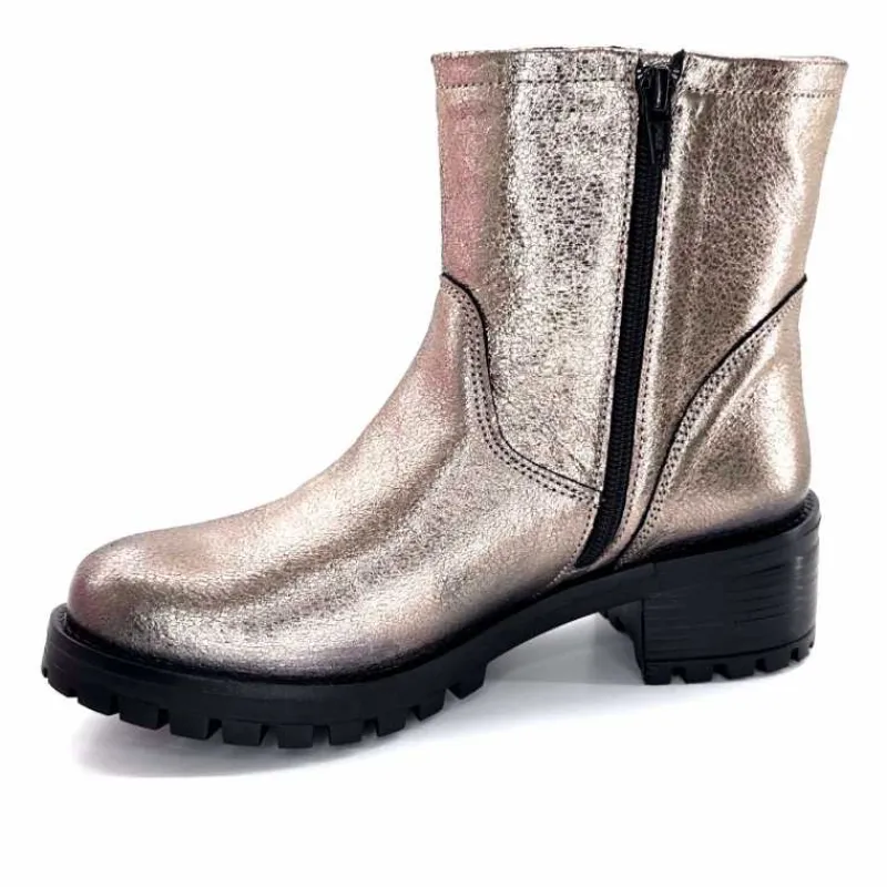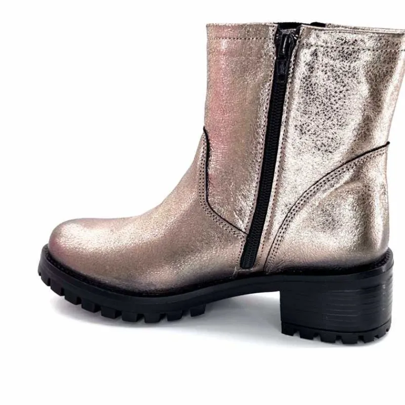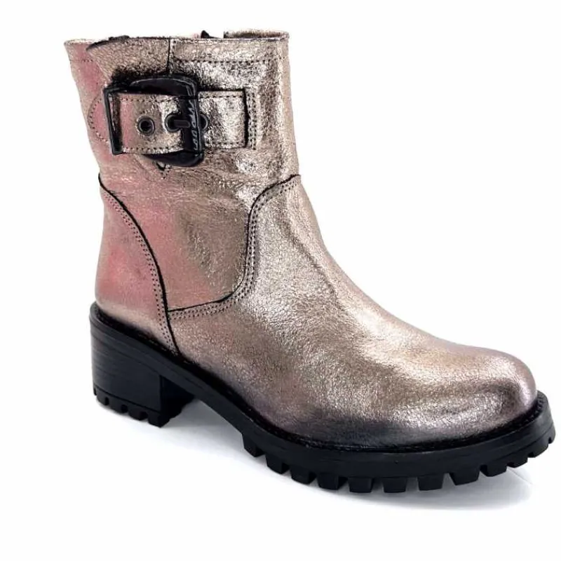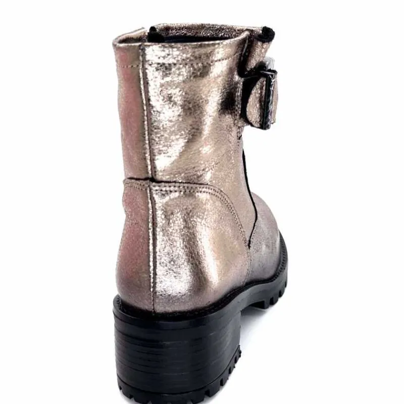 Rock|Bottines<follia dolce Bottines Bikers Ivoire Caici Cuir Métal Gris GrisMétal