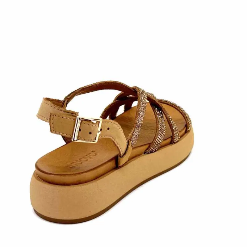 Compensées & Plateformes|Plateformes<MKD Sandales Plateforme Irmin Cuir Doré Beige Noir