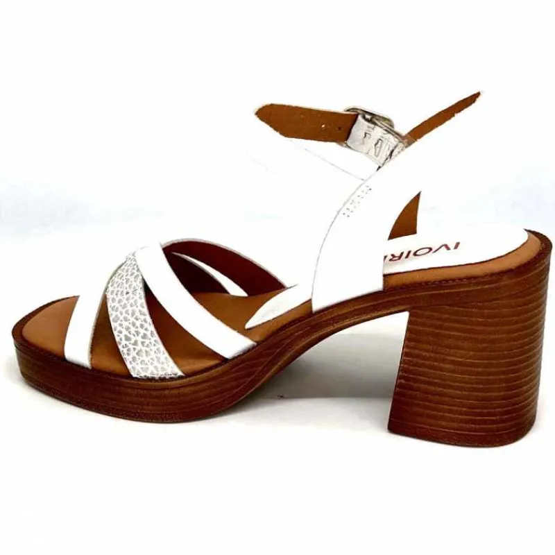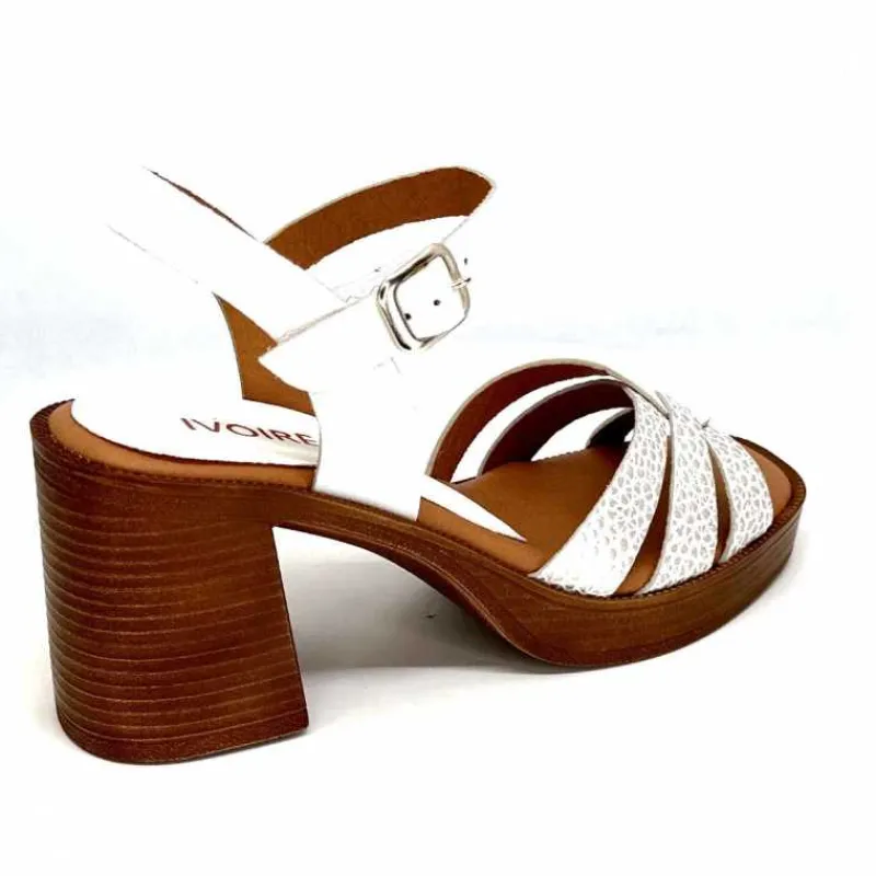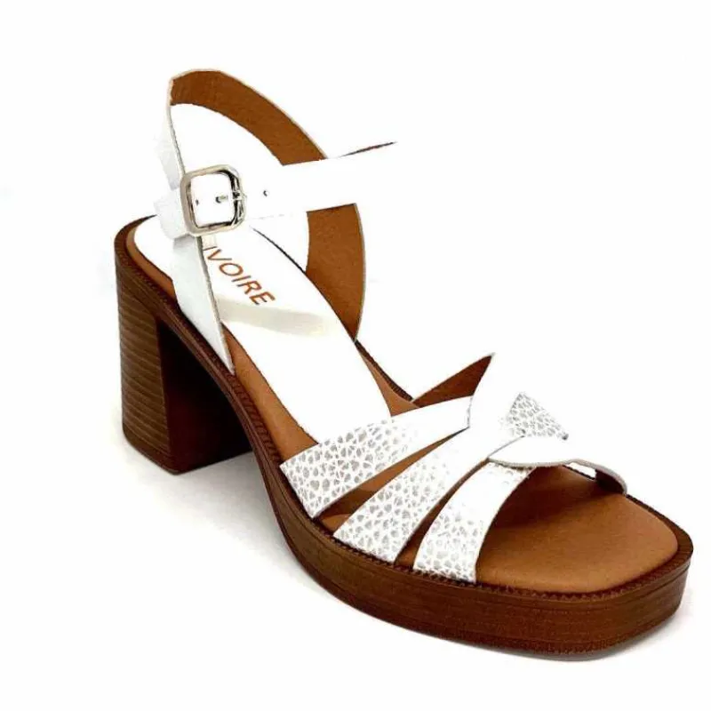Vacances|Sandales<380-ivoire Sandales à Talon Ivoire 12335 Cuir Blanc
